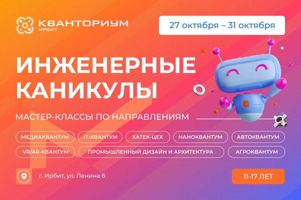 Детский технопарк «Кванториум г. Ирбит» проведёт серию открытых мероприятий, посвящённых передовым направлениям науки и техники.