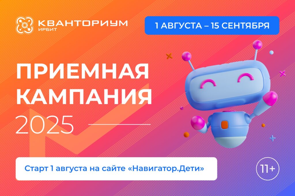 Уважаемые родители и будущие кванторианцы!  1 августа 2025 года в ДТ «Кванториум в г.Ирбит» стартует приемная кампания!   На какие программы можно подать заявки? КВАНТОРИУМ. 1.0Акцент — на практику, реальные