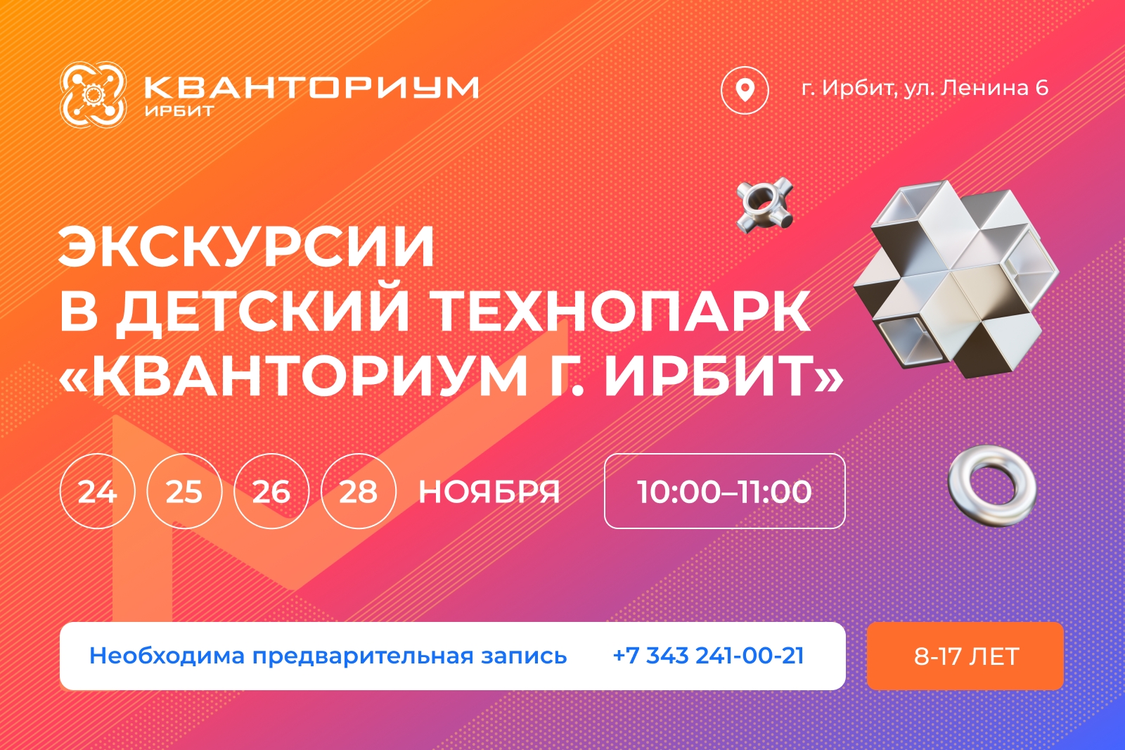 Детский технопарк «Кванториум г. Ирбит» проведёт серию открытых мероприятий, посвящённых передовым направлениям науки и техники.